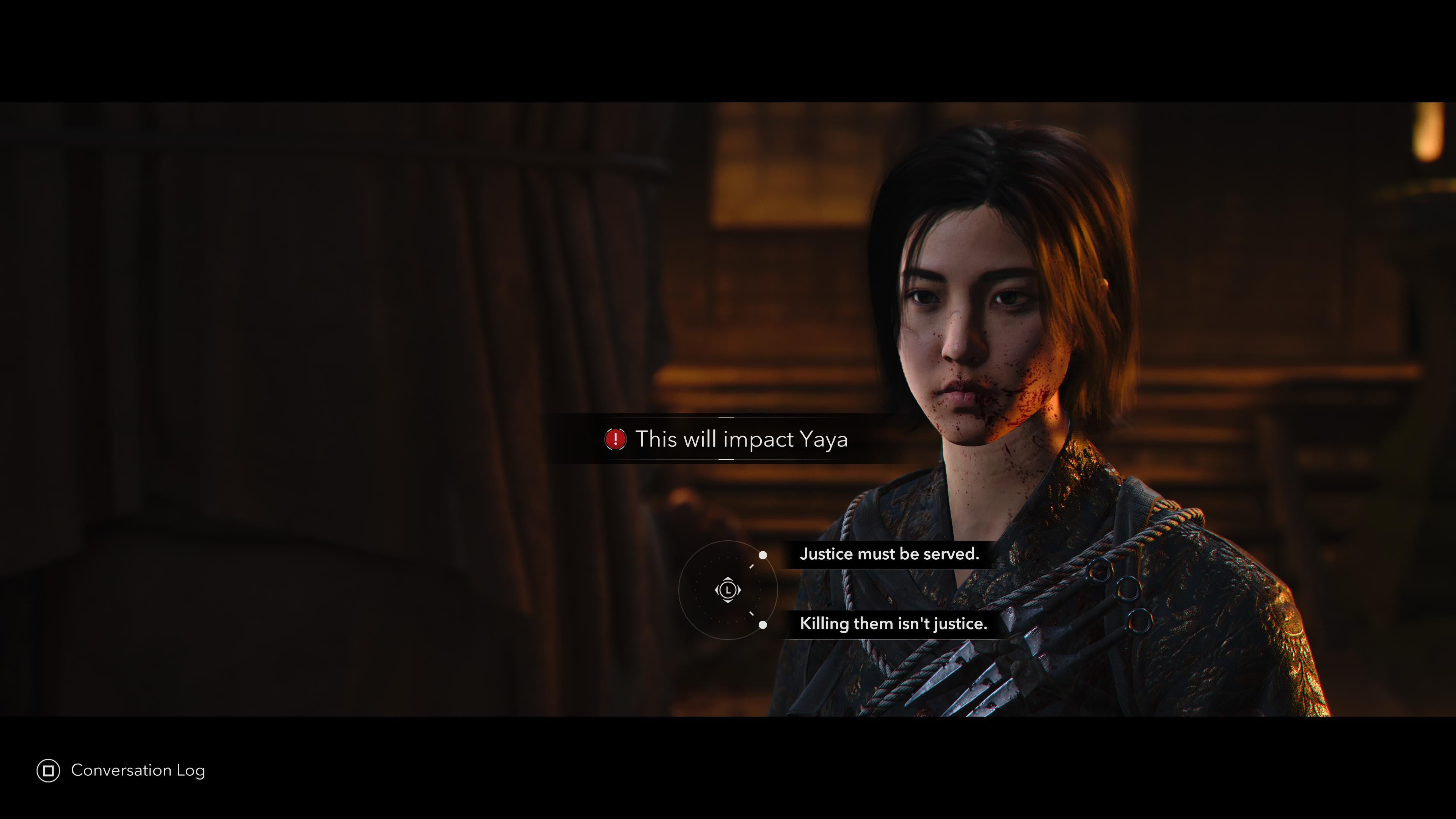 When Naoe is given a chance to interject, she can either choose forgiveness or revenge. But to make matters even more interesting, you’re also given the ominous message that your decision will “impact Yaya”.