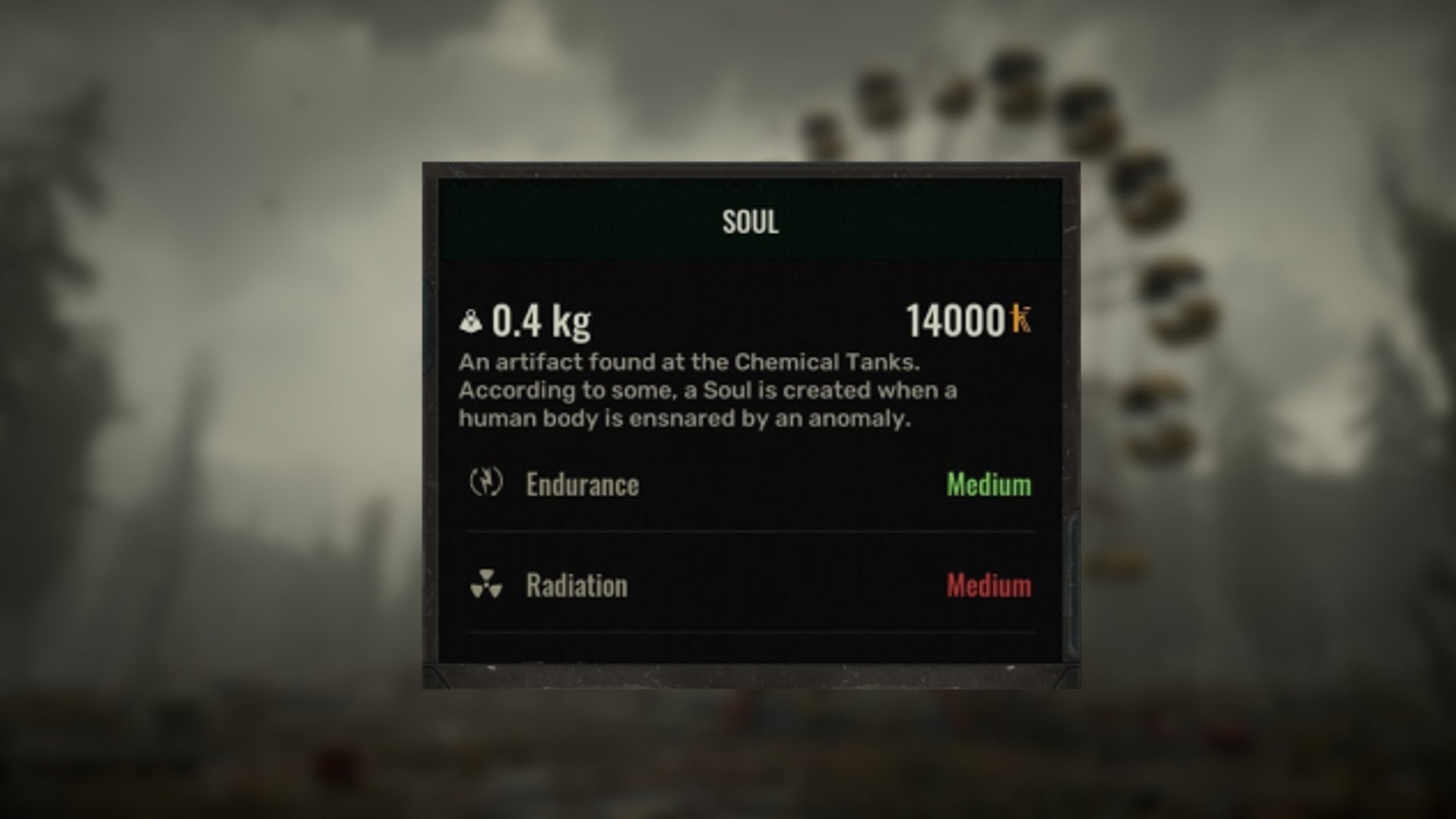 The Soul Artifact is found near chemical anomalies and provides the following: