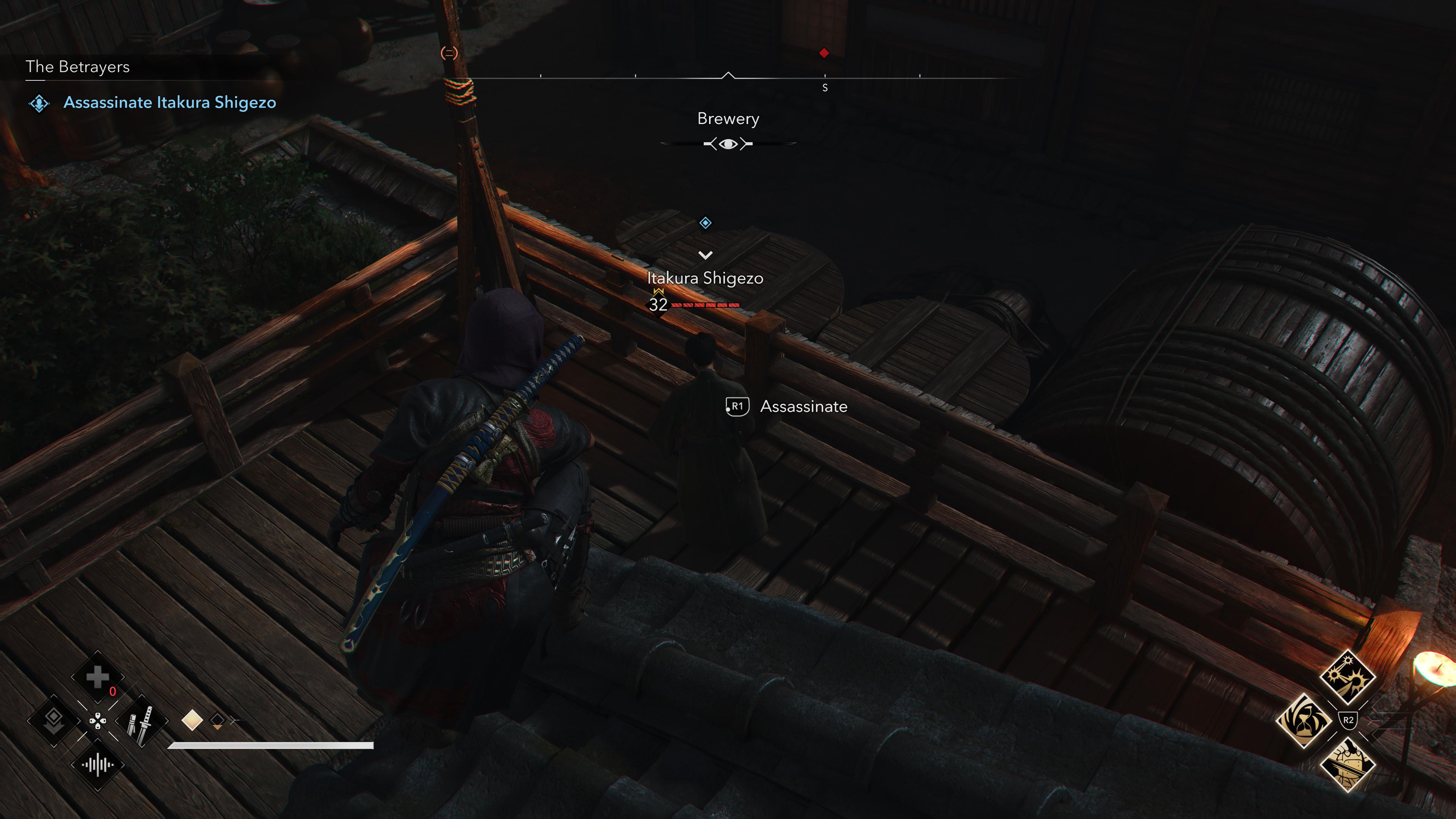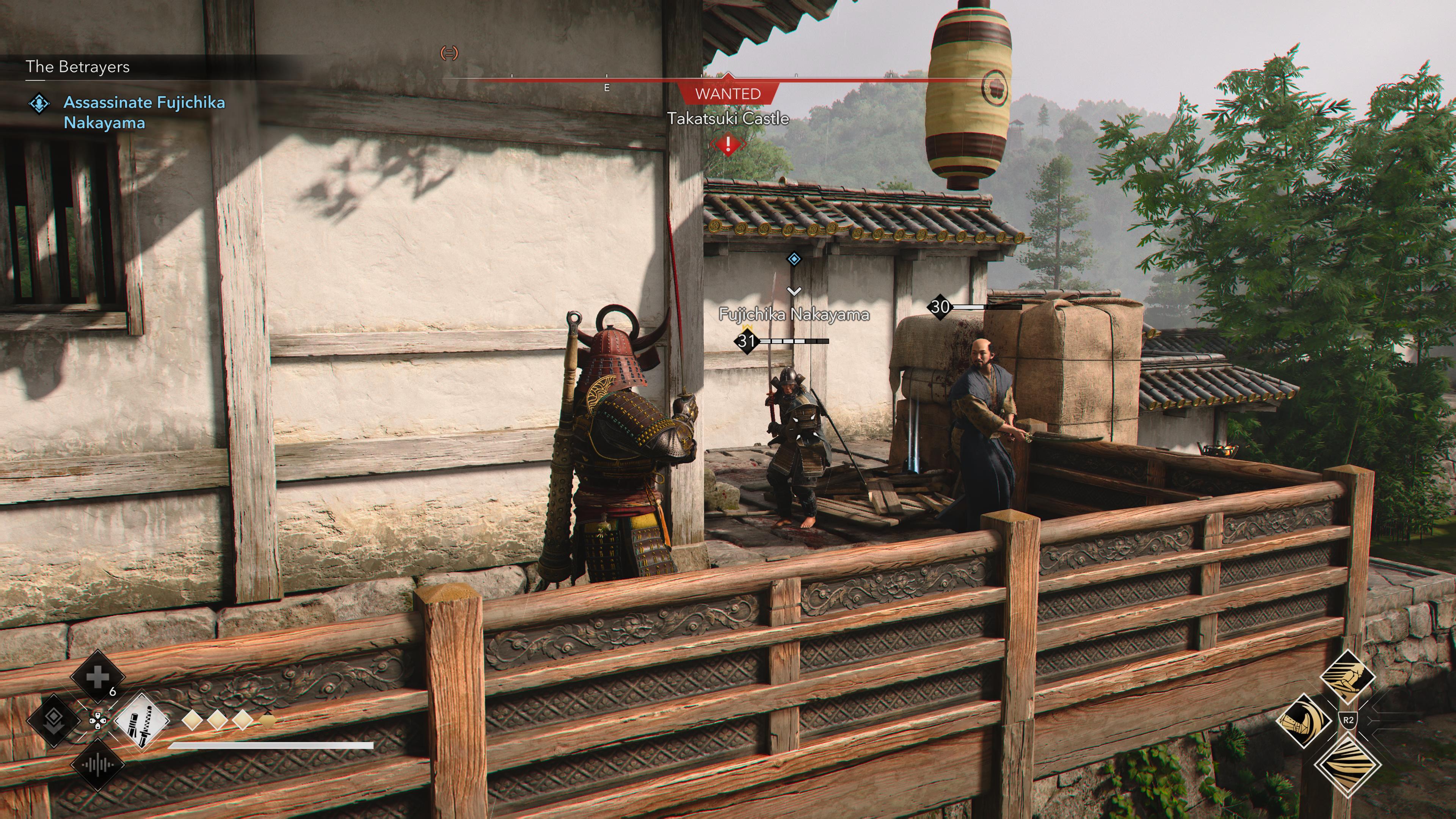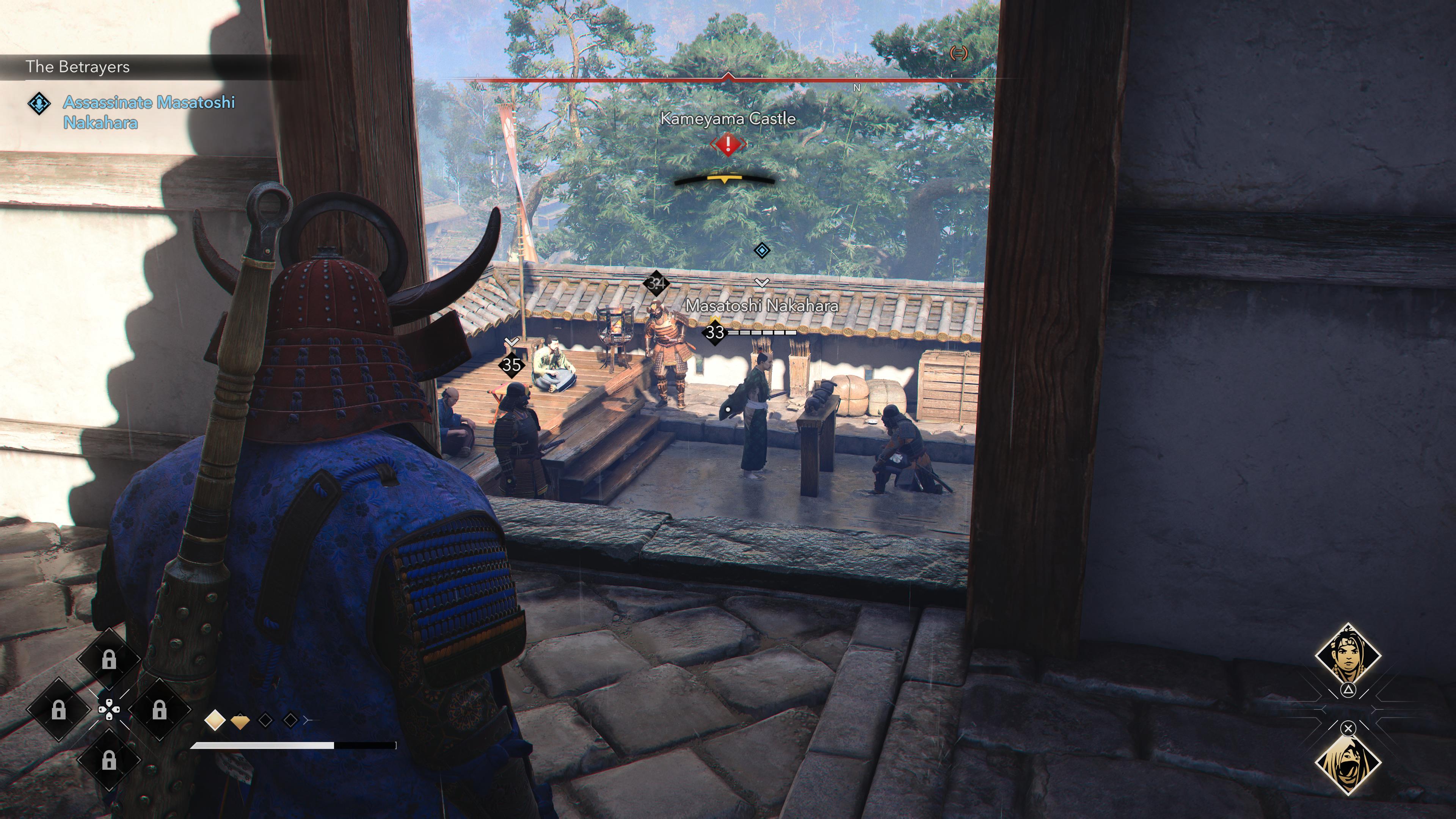 Burst in to spoil the party and try to focus on Masatoshi himself, otherwise it’s easy to get overwhelmed by tough, armored samurai who come to his aid. Don’t overstay your welcome once he’s defeated, for which you can claim the Warrior’s Garden Tanto, as well as the Assassination on Shadow Piercer engraving.