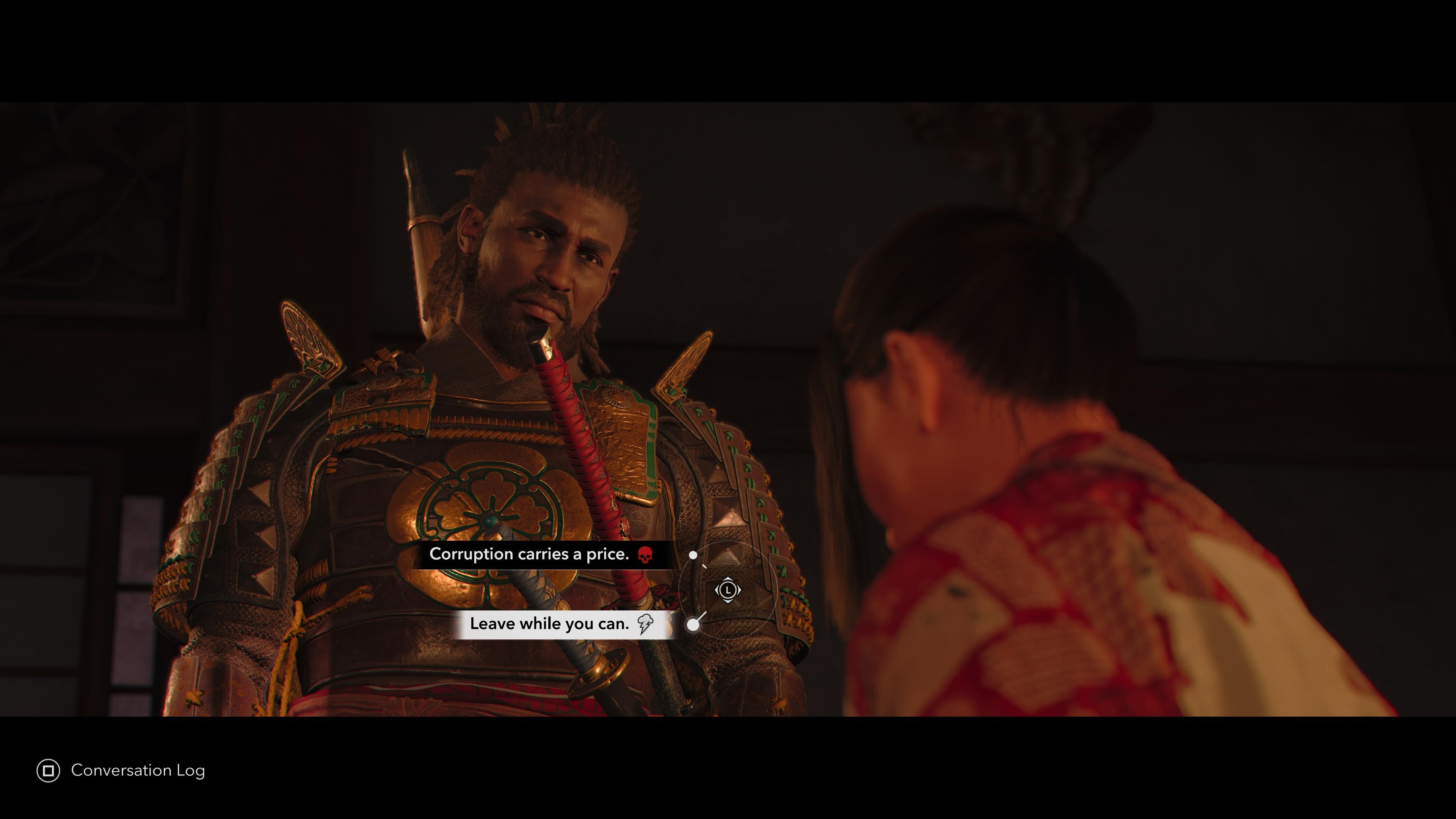As a tangible reward, he gives you a lovely polished helmet that was given to him by Nobunaga, which you can marvel at the intricate craftsmanship of while you try not to think about how it definitely wouldn’t fit Yasuke’s much larger head, and a hefty chunk of XP.