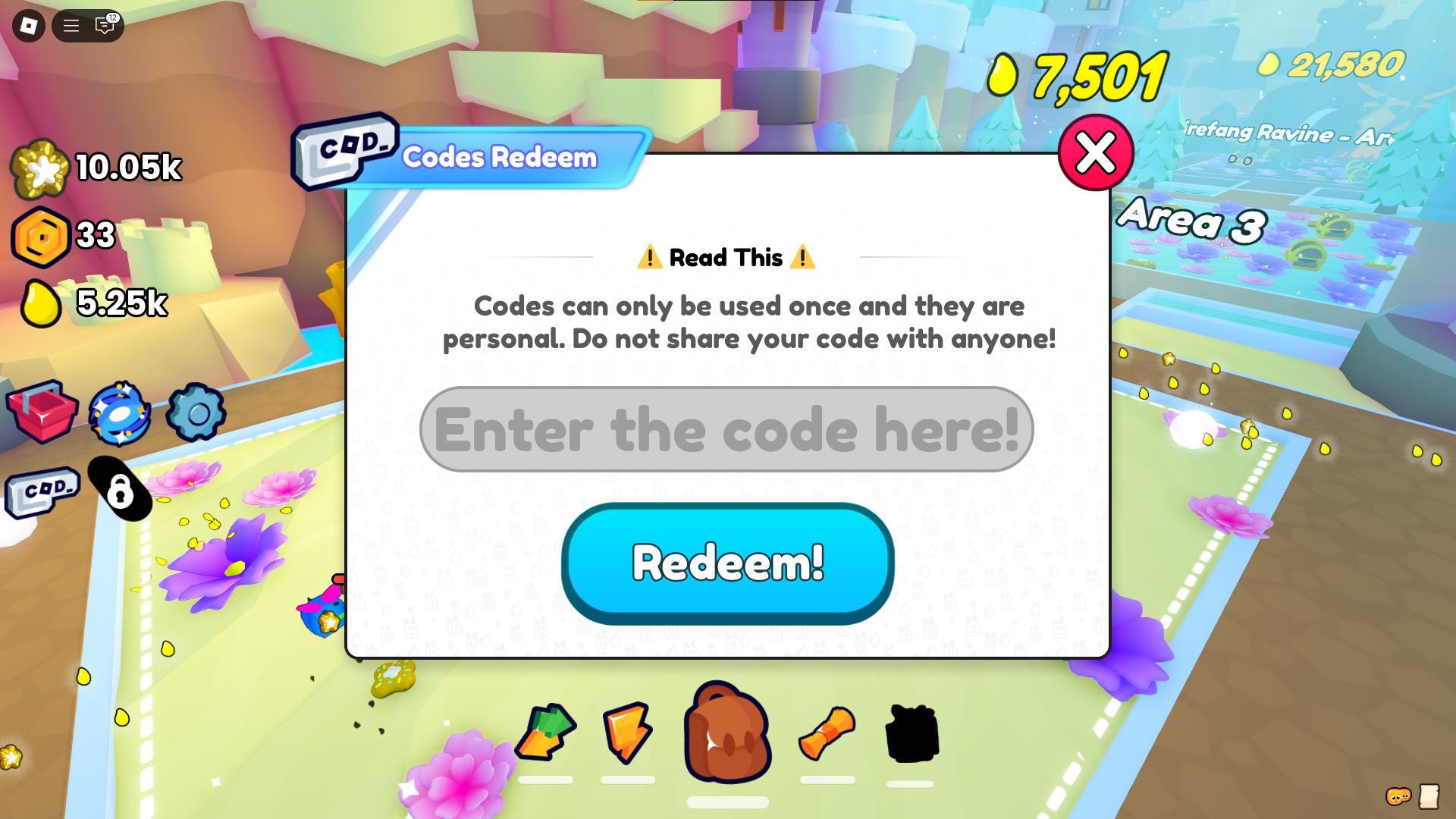 - Enter your code into the field that pops up and hit “Redeem!”