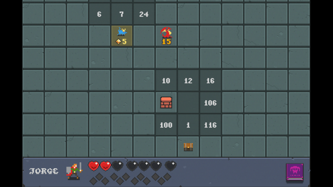 Uncleared tiles near the exposed play area have numbers on them. In regular Minesweeper, these indicate the number of explosives nearby, but there’s a little more to it here. Part of Dragonsweeper’s fun, of course, is working out how, exactly, developer Daniel Benmergui has glued all these archetypes together, so I won’t say anything further. If you’re stuck, though, there’s a manual with a bestiary.