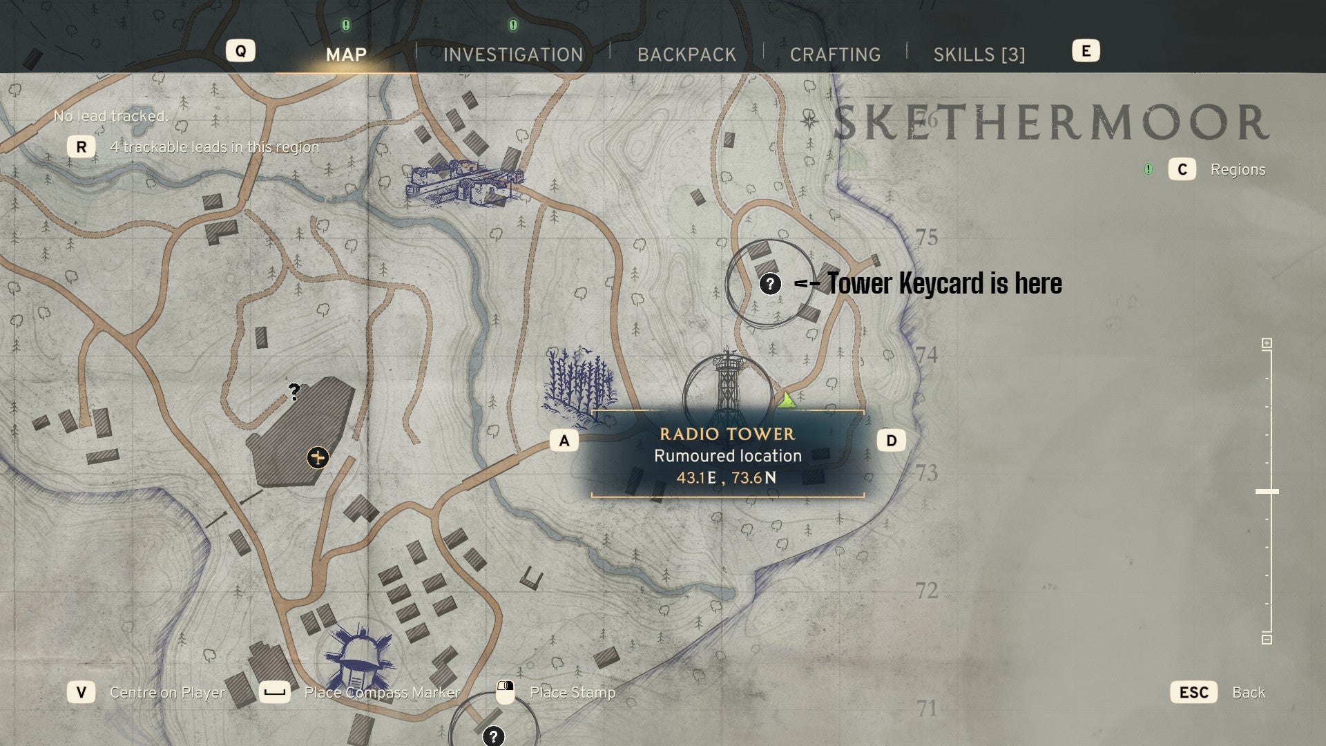 Inside the Bunker, the Casterfell Woods Radio Tower Keycard is found on a desk. After powering the tower, it’s time for a trip to Skethermoor.
