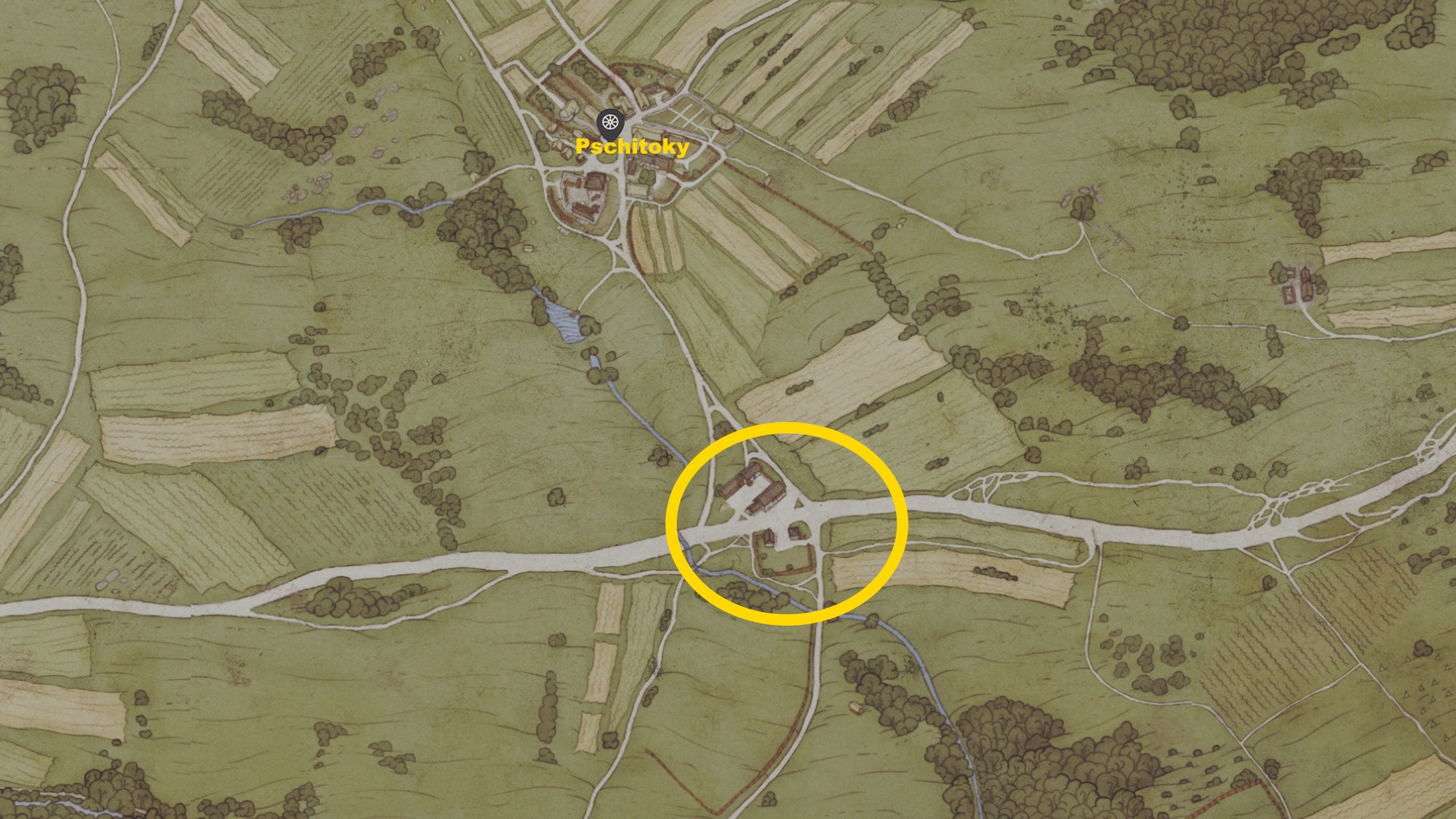 Your next stop is Miskowitz, on the road west of Bylany. Don’t travel west of Miskowitz yet, or you’ll limit your options when it comes to dealing with Matthew.