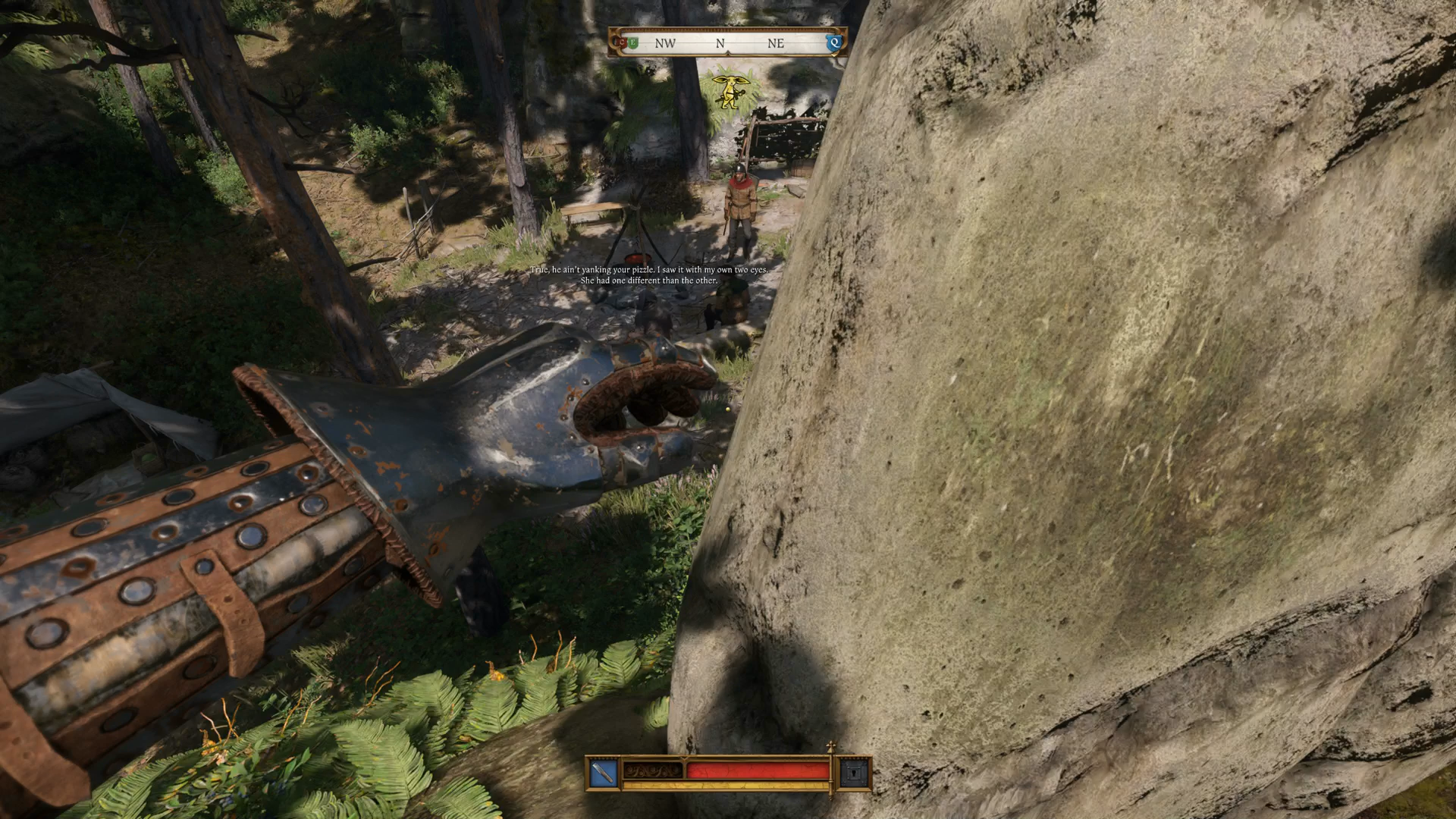 Again, Gnarly and Lord Semine will do a lot of the heavy lifting, but the task falls to Henry to run down one of the prisoners who ran off into the hills. However, this isn’t time-limited so before you do make sure to loot all of the bandits and pillage their storage chests around the camp. This nets you a huge boon of coin, items and useful trinkets including a unique die. Do this now, since it’s very easy to miss later on.