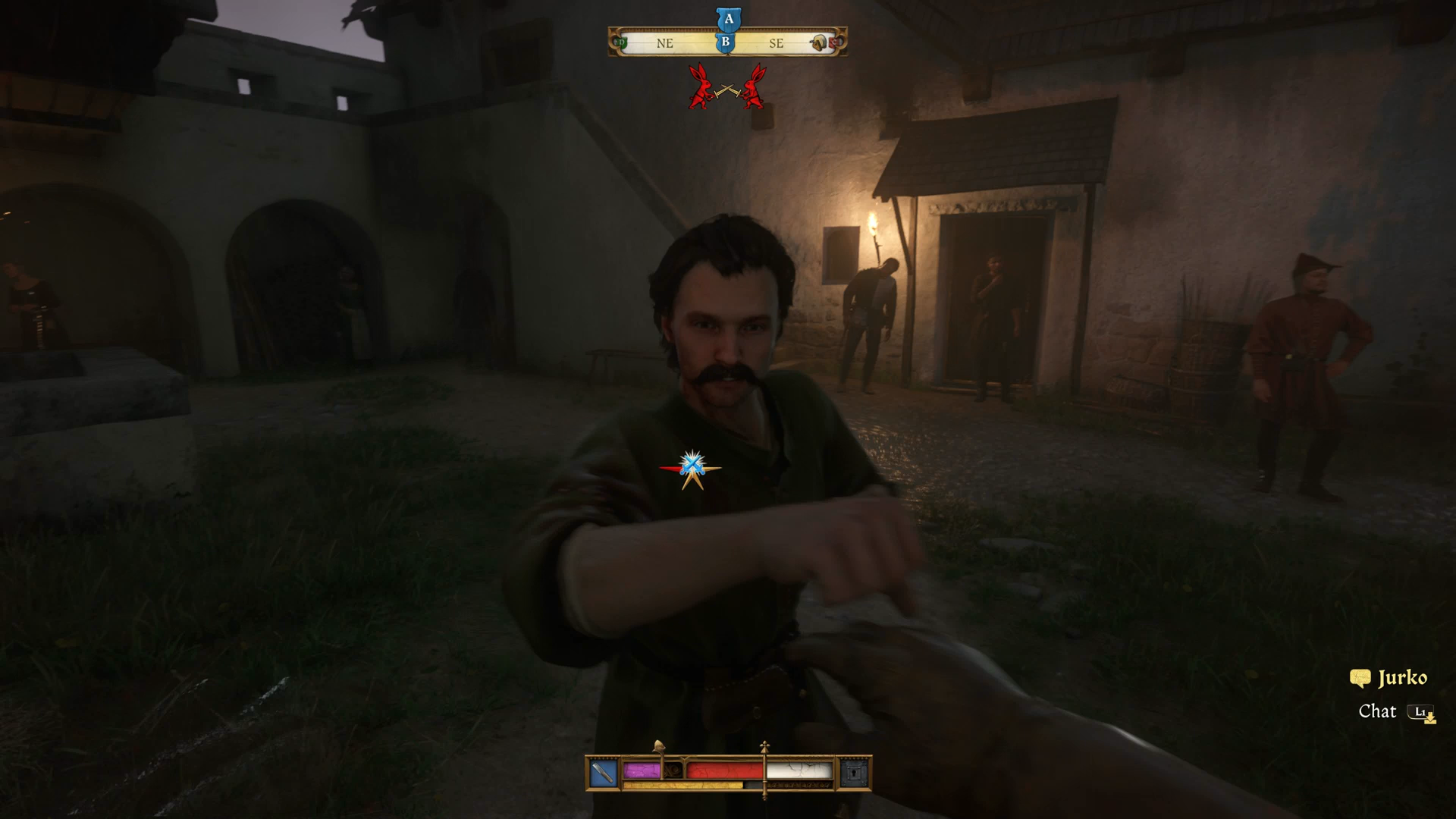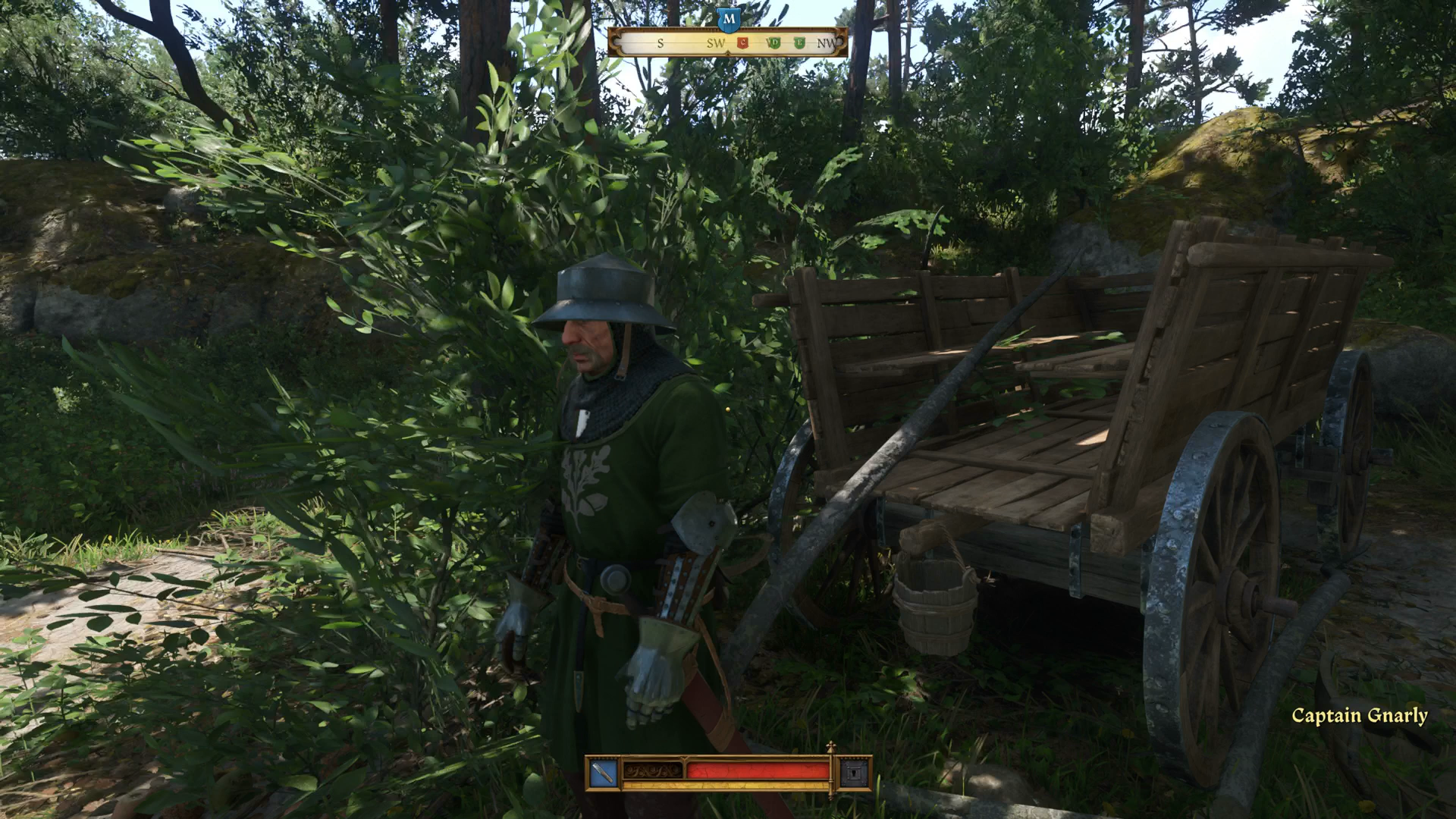 Travelling on foot was pretty arduous in the middle ages, so Henry will have to watch his step if he’s to make it unscathed. Stick to the roads (fall damage is very severe and you will frequently find yourself boxed in by high slopes otherwise) and watch out for bandits.