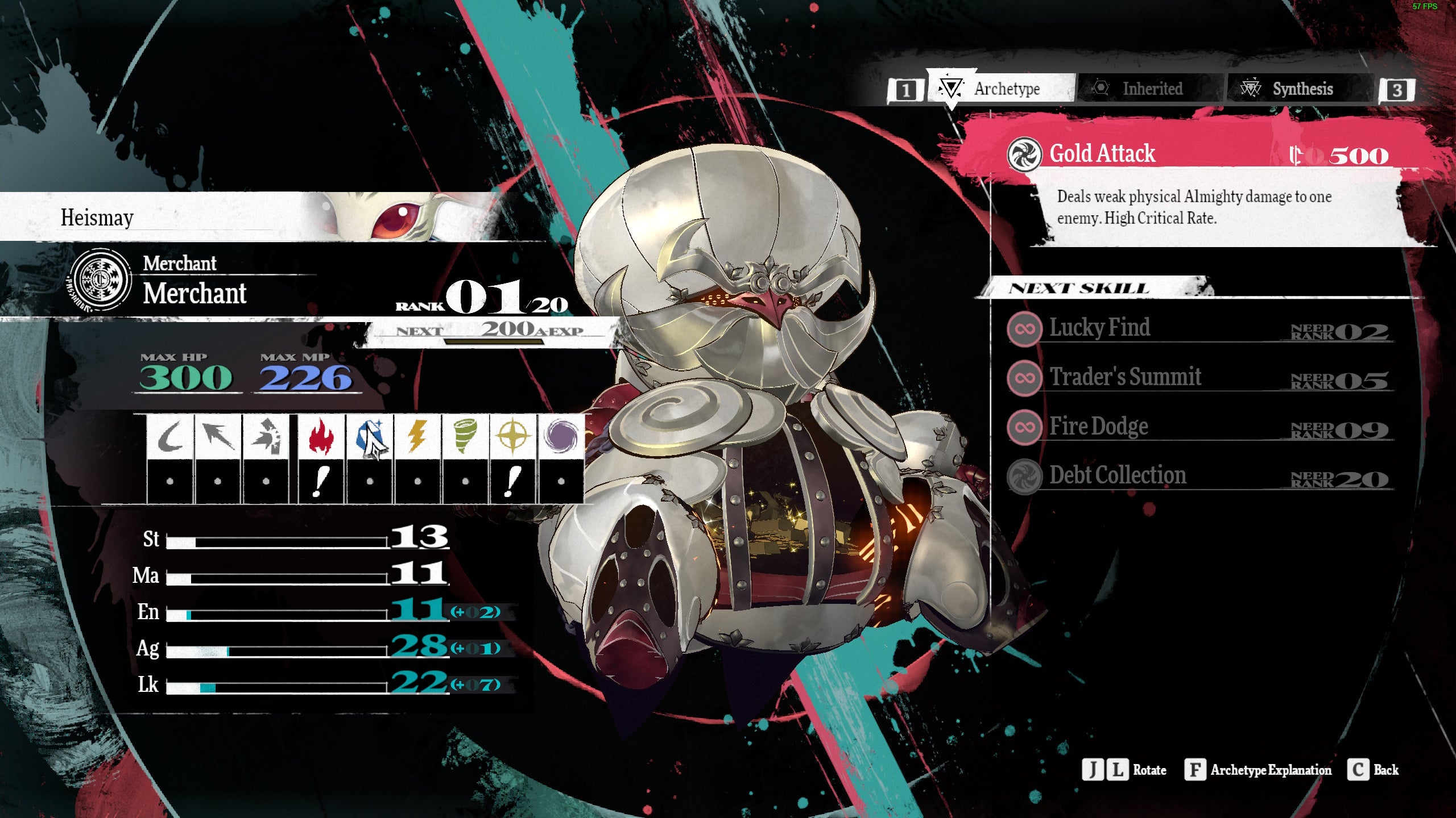Catherina inspires the Brawler Archetype, which unlocks early in the Grad Trad Cathedral dungeon. It’s a tricky one that deals strike damage and can even make enemies forget their skills, but the power of its hits depends on how much HP the user has. Skills also cost HP instead of MP, so you need to think carefully about when to use them and who can keep your Brawler from getting knocked out. Brawlers are weak to ice and resistant to strike damage.