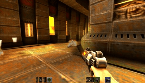 The results, though, are pretty appalling. It may resemble Quake 2, but the visuals (and enemies in particular) are blurry, the controls lag, and the frame-by-frame gameplay is enough to give you a headache.