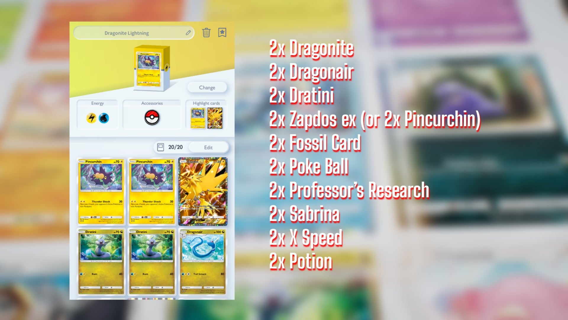 Given that we need time to set Dragonite up, we will need to depend on low-Energy cards that delay the opponent from setting their Pokemon up, or are able to attack hard, and quickly. Electrode is good for the latter, as mentioned above, but for the former (and for a more free-to-play friendly deck), you may want to consider bringing two Pincurchin instead of Zapdos ex. Pincurchin can attack for 30 damage, but if luck is on your side, they can flip a coin to paralyse the opposing Pokemon too.