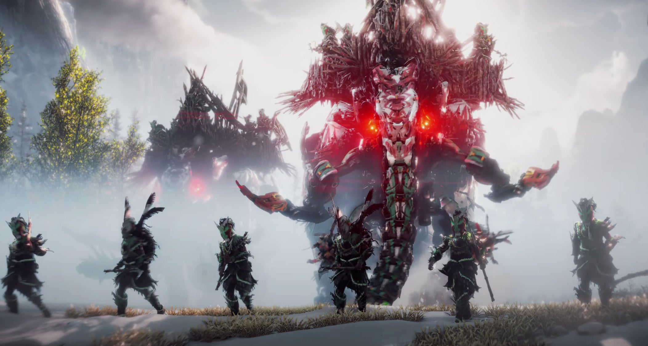 Light of Motiram itself promises realistic physics-based building, co-op and cross play, precise combat and “epic” fights. But, there is no denying its overall look is incredibly ‘Horizon’. One image shows humans in tribal gear using bows and spears to fight off an advancing Tremortusk-like creature.