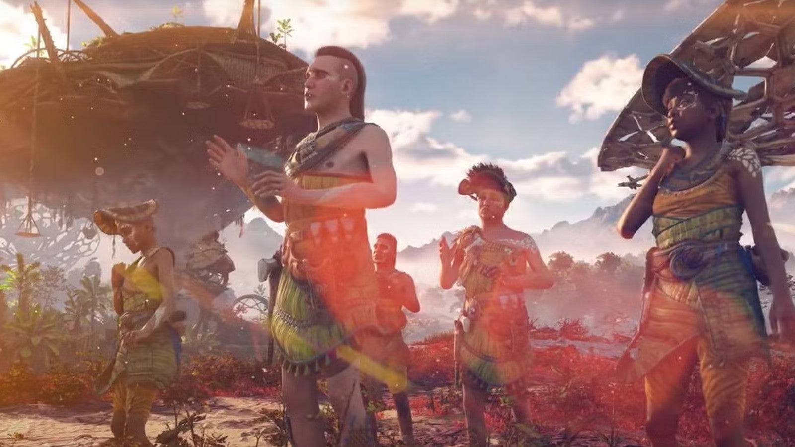 Other images feature tribesfolk themselves. Again, the Horizon similarities are striking, and my first impression was of Forbidden West’s Utaru tribe.