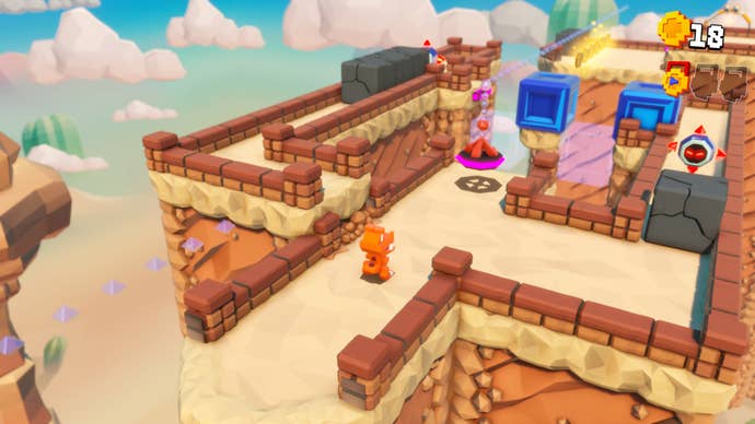 I appreciate we’re perhaps veering into Old Man Shouts At Cloud territory here, though, and the good news is Replaylee’s more fundamental revisions undoubtedly make for a more enjoyably fluid experience as you explore the openness of each world. Your roll, for instance – useful for getting around quickly and thundering up ramps – is no longer bound by a stamina limit, massively improving the flow of traversal. And everything feels tighter, more precise across the board. Curiously, the classic double-jump has – unless I’m being extremely daft – been jettisoned in favour of a sort of static upward leap to reach higher places, but for the most part it’s business as usual abilities-wise. And while the upfront dump of moves has confounded me a bit as I struggle to recall something critical to completing an objective (previously these were meted out gradually over time), it’s a choice that ultimately feels more liberating.