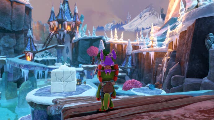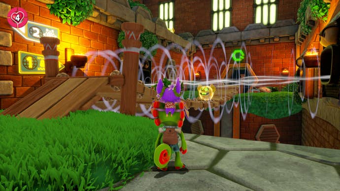 There are other obvious improvements too: a better camera; unlockable fast-travel points; easier access to useful information, such as the location of collectibles you’ve already found; the decision to put vendors Trowzer and Vendi at the start of each level rather than somewhere arbitrary you’ll likely have forgotten by the time you return, and probably a bunch of stuff I haven’t yet noticed too. Playtonic has also, I think, ditched some additional busywork by setting each world (haunted bog, fairytale tundra, shimmering casino, etc.) to its expanded secondary state from the start, meaning all challenges are available from the word go. And shorn of the original’s various niggling frictions, it’s been much easier to sink into Yooka-Laylee’s engaging whimsy, and appreciate the strengths of its design.